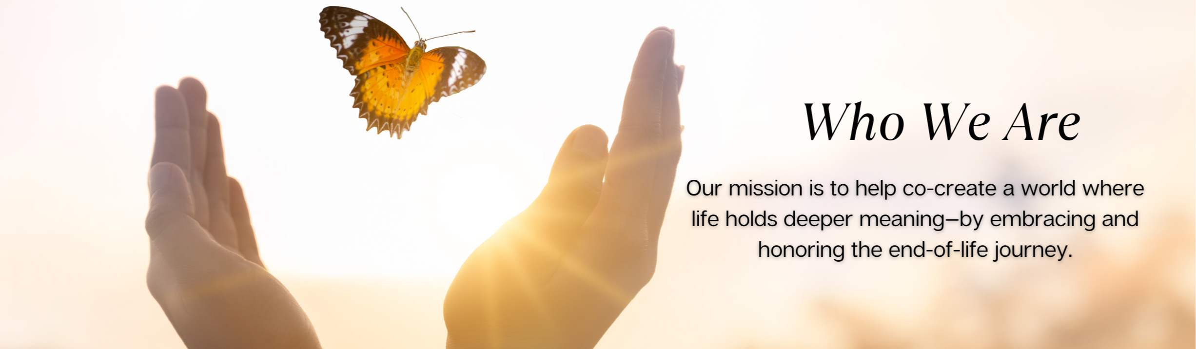 Our mission is to help create a world in which individuals, families, and communities embrace a harmonious relationship with the end-of-life transition — and where no one dies alone, in pain, or without love.